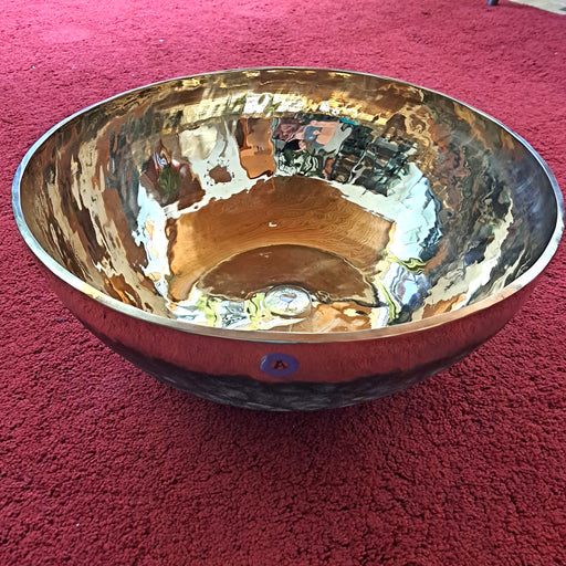Angeboten wird die abgebildete Klangschale (Ohne Deko und Zubehör) Gewicht: 2,4 kg. Sie ist von handgeschmiedet und glänzend poliert. Einsatz in ...