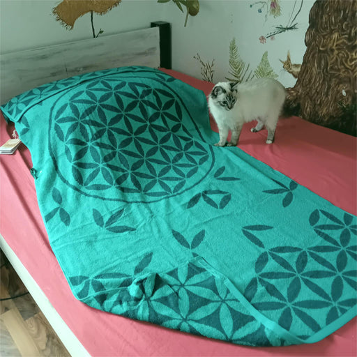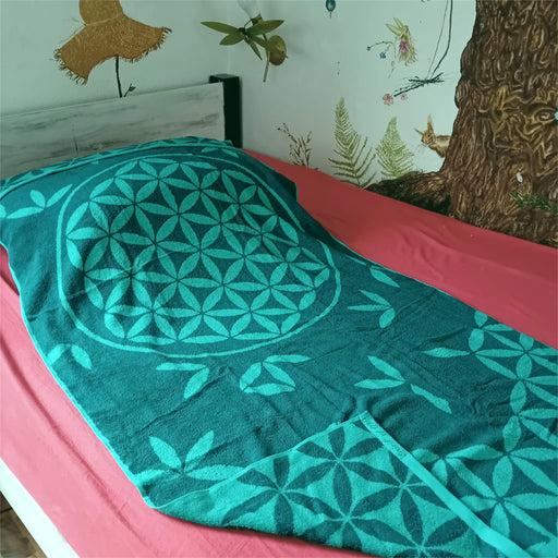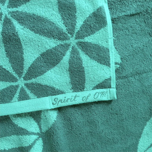 Saunaliegetuch aus Biobaumwolle mit eingearbeiteten Edelsteinen Dieses kuschelige Handtuch ist etwas ganz Besonderes. Zweifarbig in smaragdgrün- je...